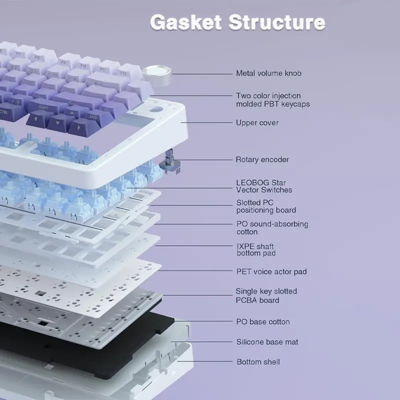 🟣 ساختار Sealing و ۵ لایه عایق صدا؛ تجربه “Thock” نرم و دلنشین